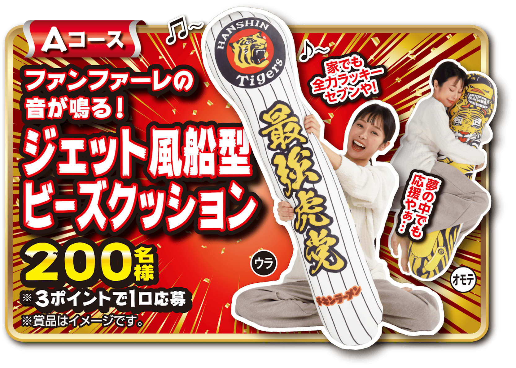 <Aコース(ジェット風船型ビーズクッション)&Bコース(ベースボールシャツ)>